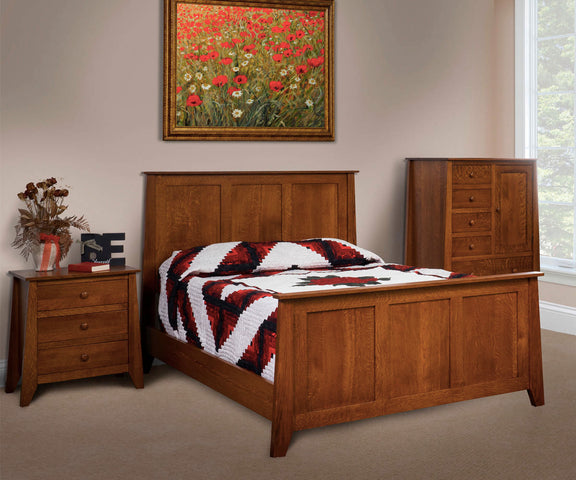 Shown here in Quarter Sawn White Oak with an OCS 113 Michael’s Cherry stain, the Berwick Panel Bed highlights striking grain patterns and rich, warm tones that showcase the beauty of premium hardwood.
