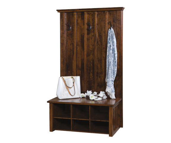 The Amish Mason Hall Seat blends thoughtful design with handcrafted quality, offering a perfect balance of storage and style. Built from Rustic Cherry and finished in a rich FC-40592 Earthtone stain, this hall seat features six open cubbies beneath the seat, ideal for organizing shoes, baskets, or accessories. Its warm finish, clean lines, and practical layout make it a beautiful and functional addition to any entryway. Crafted from solid American hardwood and built to last for generations.